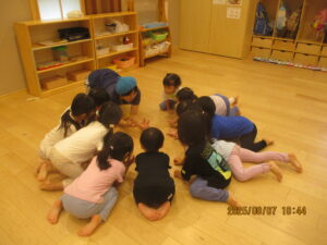 「だるまさんの1日」だるまさんがころんだ の鬼ごっこをアレンジ / 絵からの連想・表現活動 / 絵本「めっきらもっきらどぉんどん」と没入体験 等